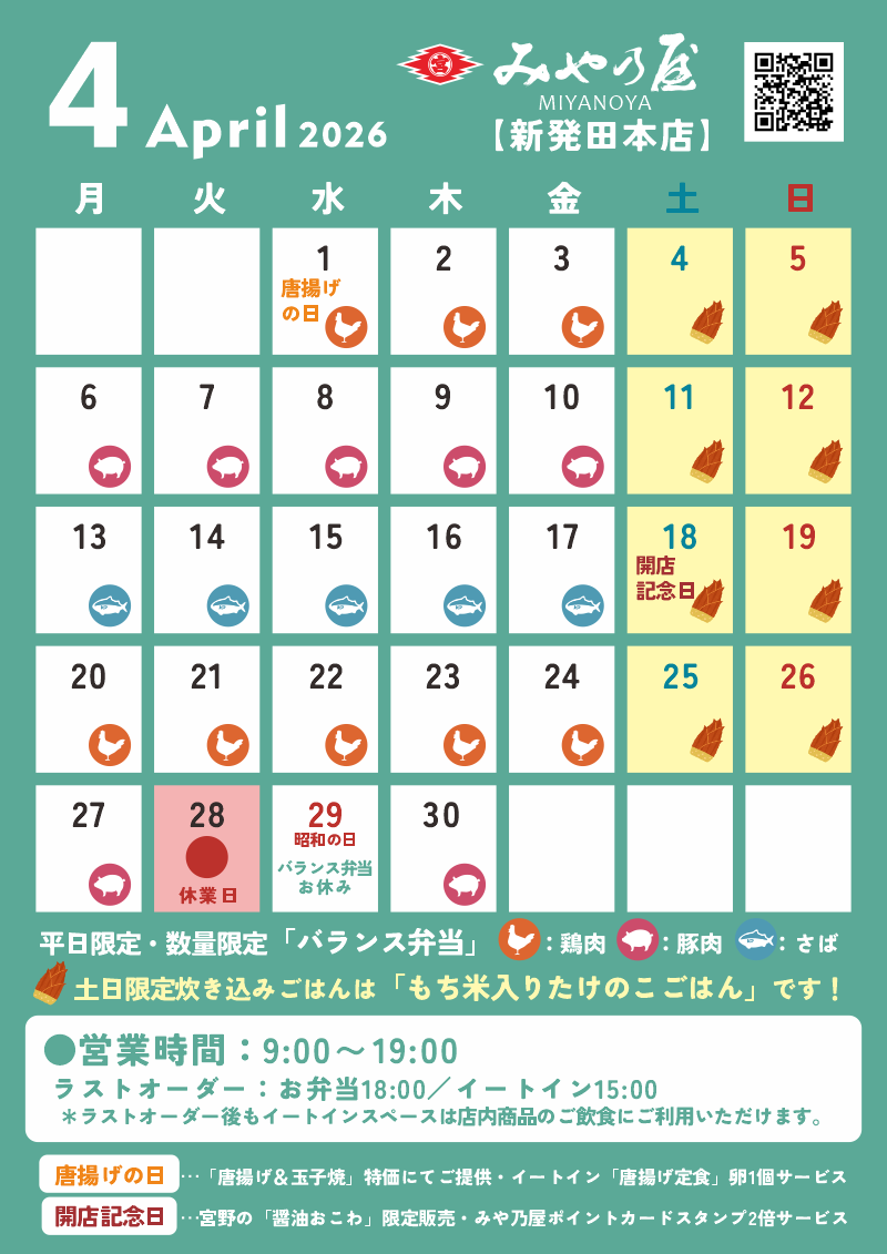 トップ2026.04.242022.02.03slider12slider13slider2slider3メニューはこちら↓ ※イートインは新発田本店のみお知らせ・最新情報《大形店》5月の営業カレンダー 2026.4.22《新発田本店》5月の営業カレンダー 2026.4.224/25(土)スタート【お母さんが作ったみたいなお弁当フェア】のお知らせ 2026.4.224月の営業カレンダー《大形店》2026.4.84/11(土)スタート【野菜もたっぷり 春の中華フェア】のお知らせ 2026.4.8お知らせ一覧はこちら※新発田本店のみ※新発田本店のみ【期間限定】 フェア・新商品情報↑LINEお友達登録はこちらから今月の営業カレンダー《新発田本店》《大形店》