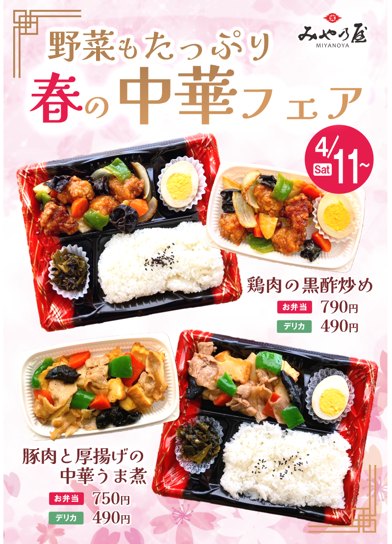 みや乃屋では、4/11(土)より【野菜もたっぷり 春の中華フェア】がスタートいたします!